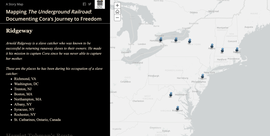 “Mapping The Underground Railroad: Documenting Cora’s Journey to Freedom” by Aliyah Weatherington examines the relationship between geography and characterization in Colson Whitehead’s novel, The Underground Railroad.